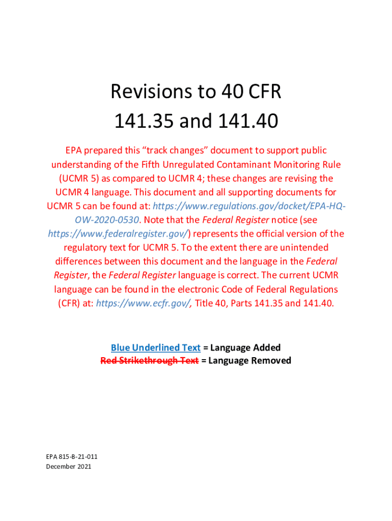 Revisionsto40CFR 141.35and141.40 EPApreparedthistrackchangesdocumenttosupportpublic understandingoftheFifthUnregulatedContaminantMonitoringRule (UCMR5)ascomparedtoUCMR4;thesechangesarerevisingthe