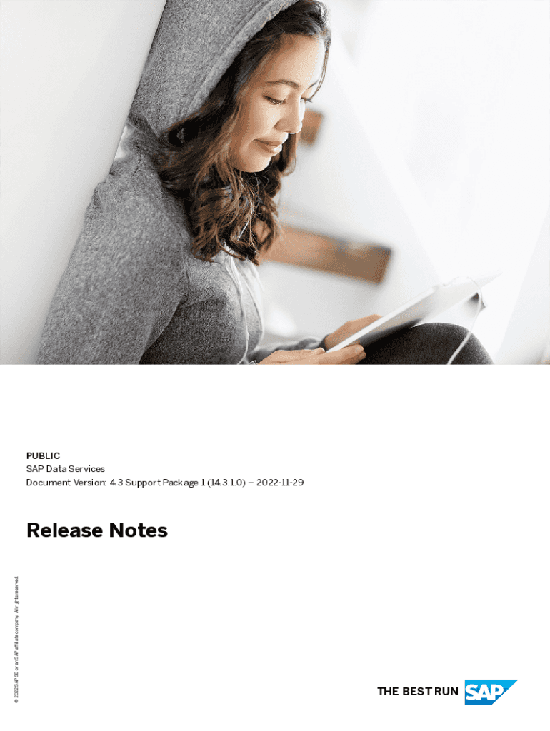 PUBLIC SAP Data Services Document Version: 4.3 Support Package 1 (14.3.1.0)20221129 2022 SAP SE or an SAP affiliate company. All rights reserved. Release Notes BEST RUN Content1About SAP Data Services