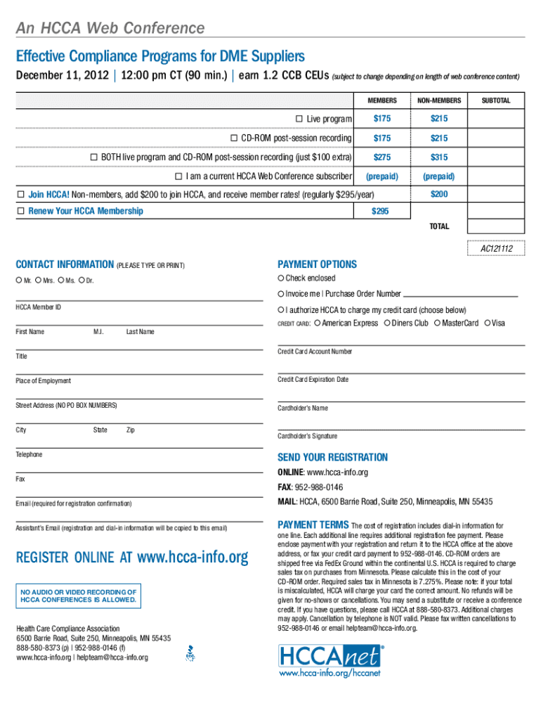 Get the free Effective Compliance Programs for DME Suppliers