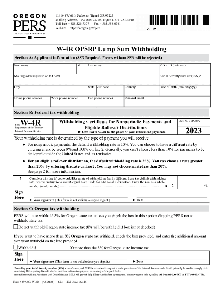 Website https://oregon.gov/persW4R OP SRP Lump Sum Withholding