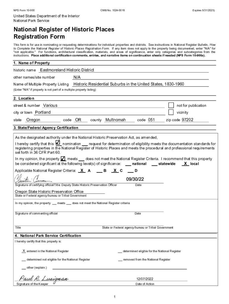 NPS Form 10900OMB No. 10240018Expires 5/31/2025)United States Department of the Interior National Park ServiceNational Register of Historic Places Registration Form This form is for use in nominating