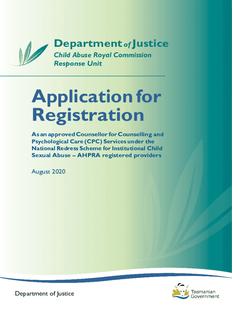 Department of Justice Child Abuse Royal Commission Response Misapplication for Registration As an approved Counselor for Counselling and Psychological Care (CPC) Services under the National Redress