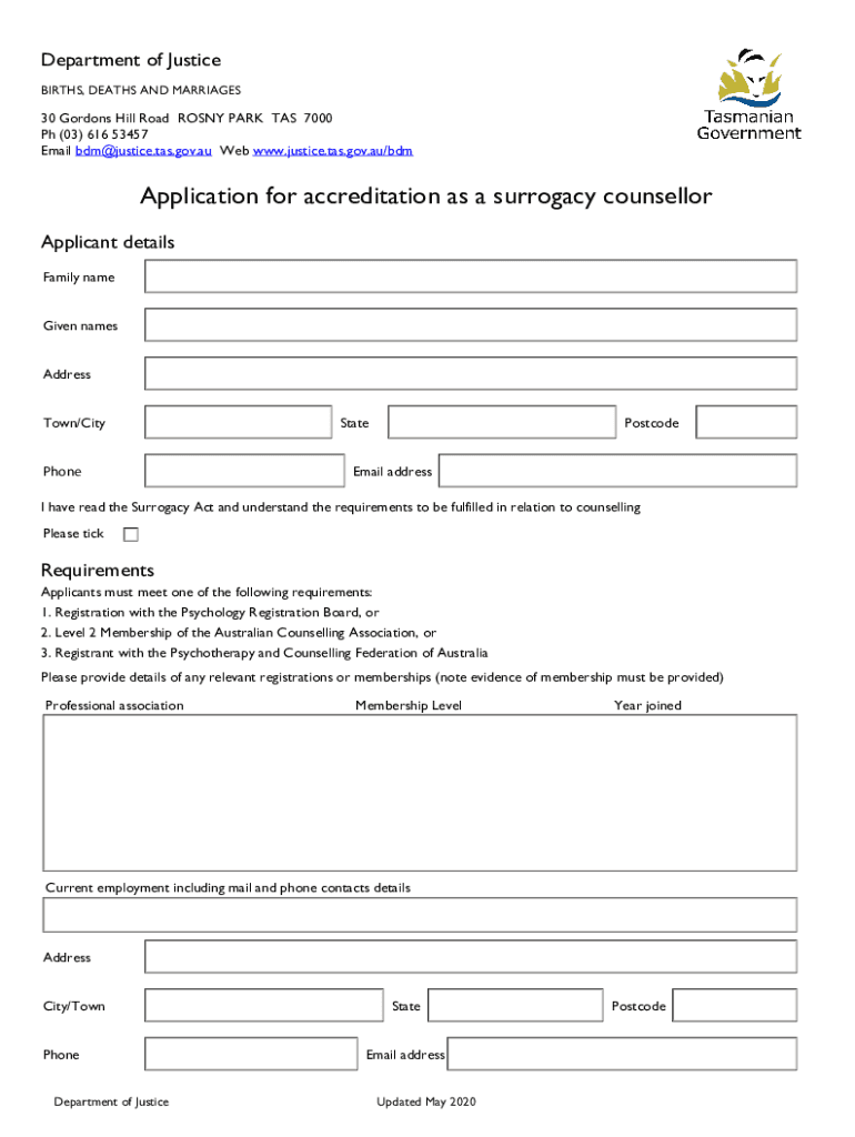 Email bdm@justice.tas.gov.au Web www.justice.tas.gov.au/bdmApplication for accreditation