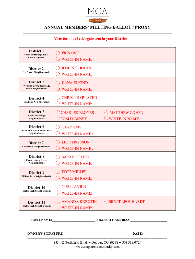 ANNUAL MEMBERS MEETING BALLOT / PROXY