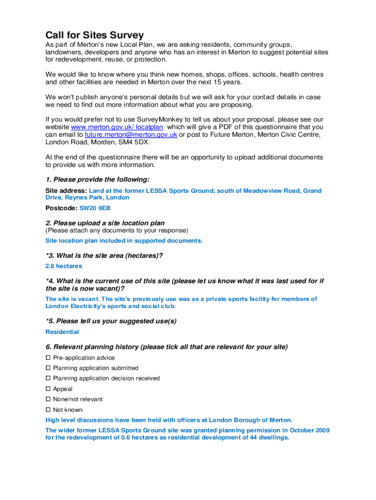 Call for Sites Survey As part of Merton's new Local Plan, we are asking residents, community groups, landowners, developers and anyone who has an interest in Merton to suggest potential sites for