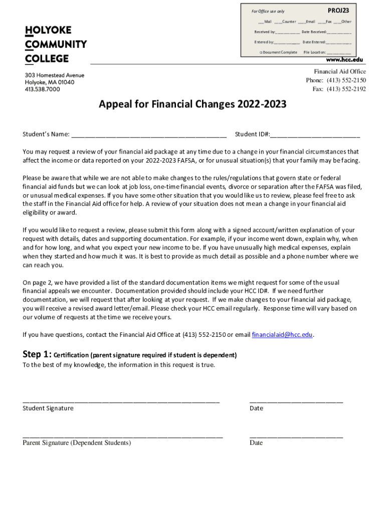 PROJ23For Office use only___Mail ___Counter ___Email ___Fax ___Others Received by:___ Date Received:___ Entered by:___ __ Date Entered:___ __ Document Completely Location: ___Financial Aid Office