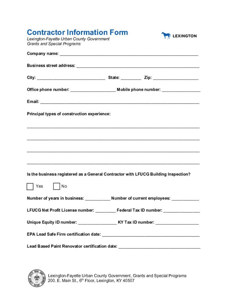Contactors requirements for Housing REHAB & ER programs To perform work for these programs, contractors must submit the following information: 1. Contractor\'s information form 2. Registration with