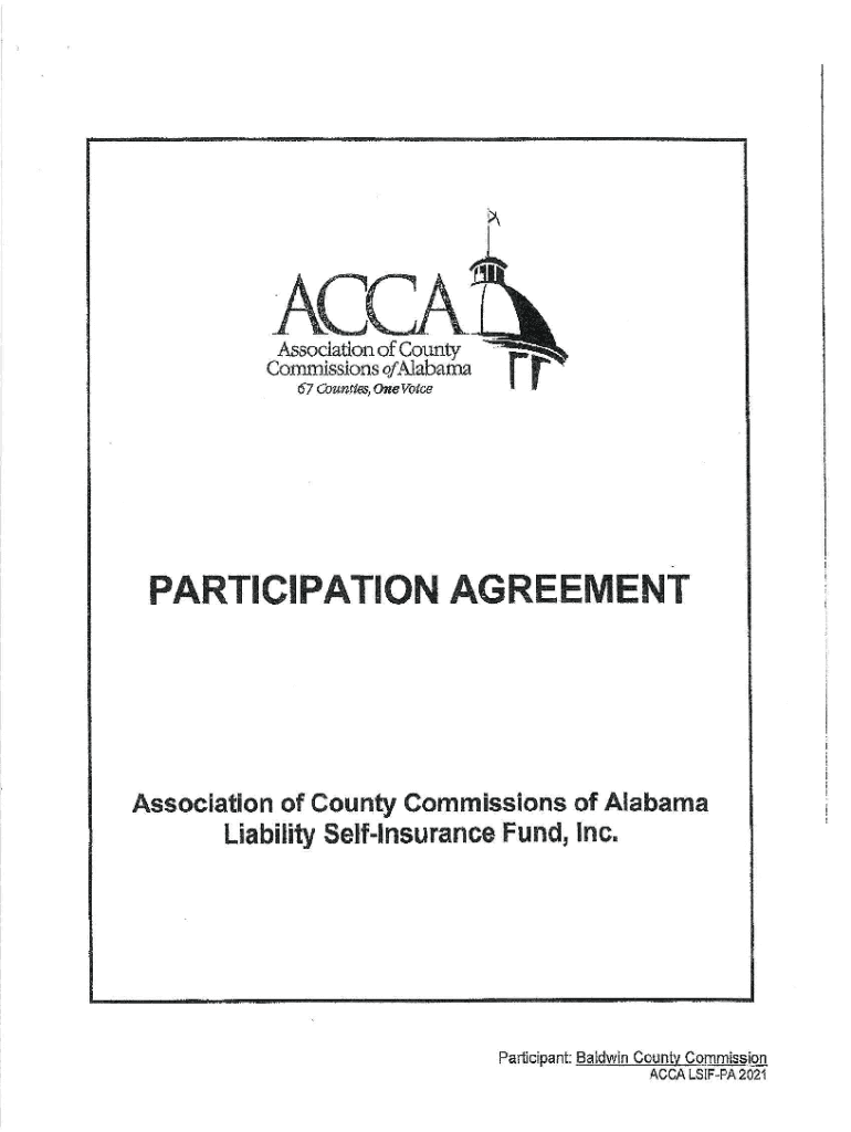 67 Counties, One VoicePARTICIPATION AGREEMENTAssociation of County Commissions of AlabamaLiability Reinsurance Fund, Inc. Participant: Baldwin