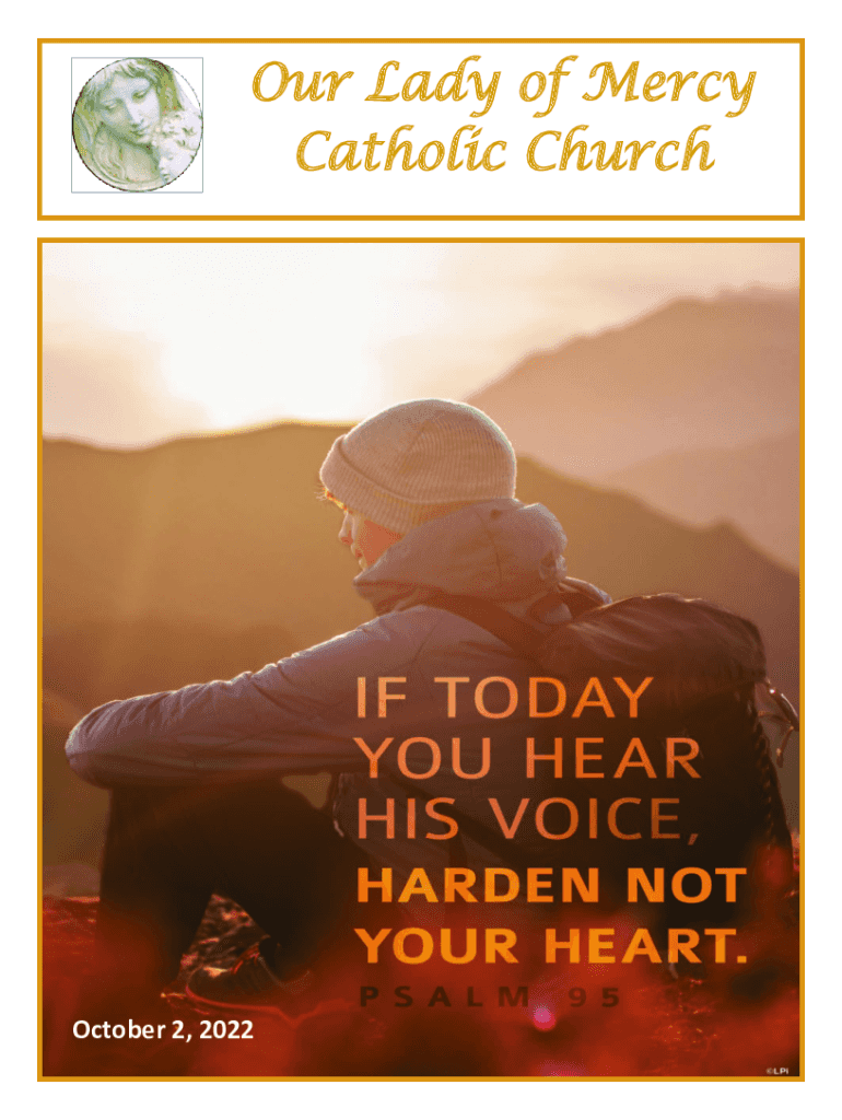 Our Lady of Mercy Catholic Church October 2, 2022Pope Francis pontiff I pray that the Church, and each of us, may be granted the grace to discover the Lord Jesus in our brothers or sisters who are