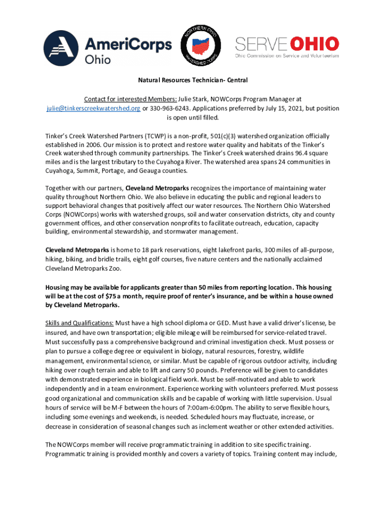 Get the free NOWCorps Natural Resources Technician- Central