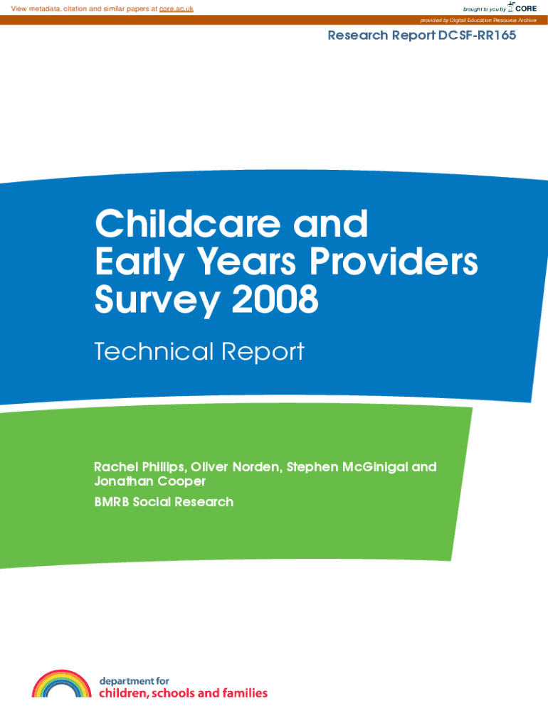 View metadata, citation and similar papers at core.ac.brought to you byCOREprovided by Digital Education Resource ArchiveResearch Report DCSFRR165Childcare and