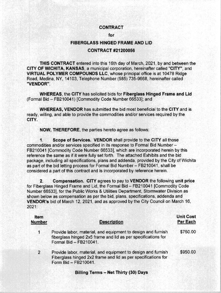 Virtual Polymer Compounds LLC 10478 Ridge Road Medina, NY 14103December 15, 2022 21200056Ladies &/or Gentlemen: The City of Wichita wishes to exercise its option to renew its contract dated March