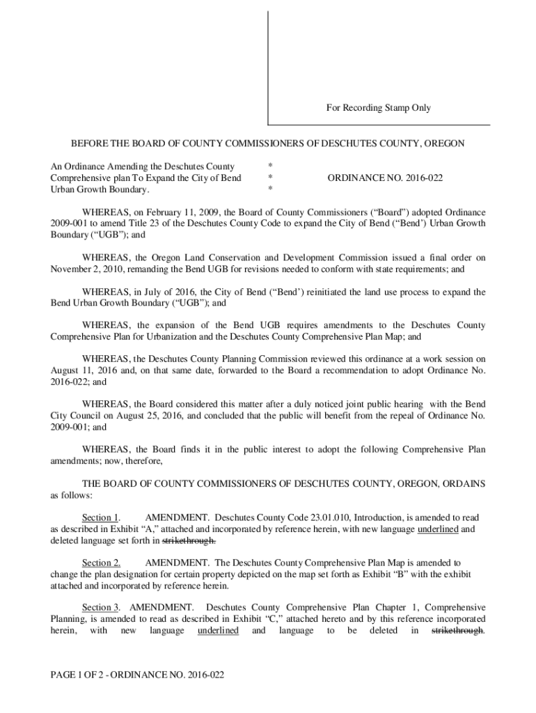 For Recording Stamp OnlyBEFORE THE BOARD OF COUNTY COMMISSIONERS OF DESCARTES COUNTY, OREGON An Ordinance Amending the Descartes County Comprehensive plan To Expand the City of Bend Urban Growth Boundary.*