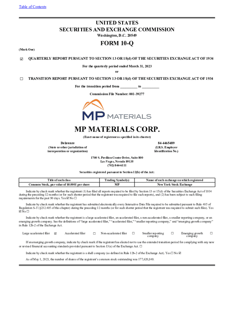 Table of ContentsUNITED STATES SECURITIES AND EXCHANGE COMMISSION Washington, D.C. 20549FORM 10Q (Mark One)QUARTERLY REPORT PURSUANT TO SECTION 13 OR 15(d) OF THE SECURITIES EXCHANGE ACT OF 1934 For