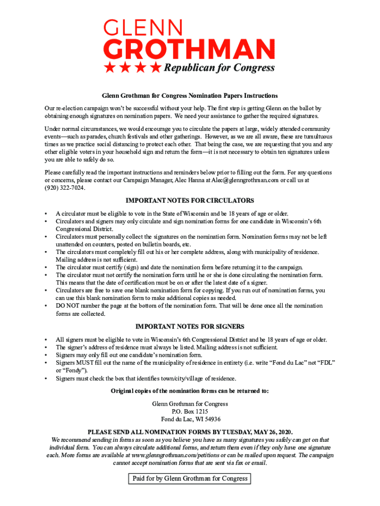Republican for Congress Glenn Rothman for Congress Nomination Papers Instructions