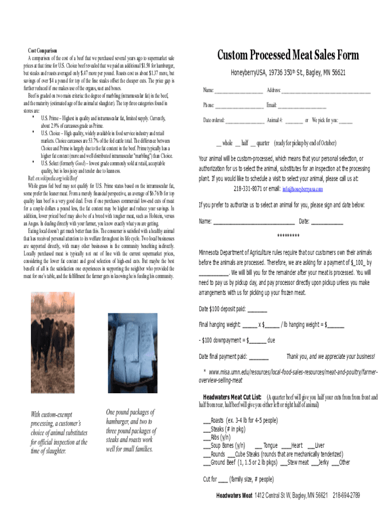 Cost Comparison A comparison of the cost of a beef that we purchased several years ago to supermarket sale prices at that time for U.S. Choice beef revealed that we paid an additional $1.58 for hamburger,