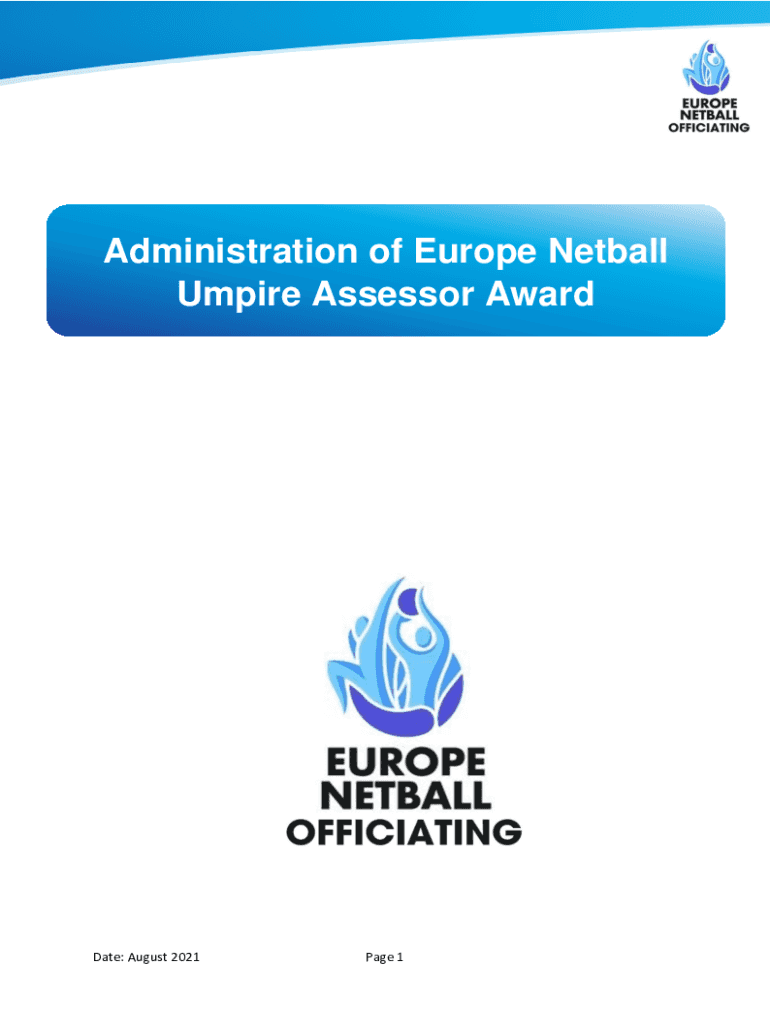Administration of Europe Netball Umpire Assessor Awardee: August 2021Page 1Copyright Europe Netball 2021 All rights reserved. This publication may not be copied or reproduced in whole or in part or