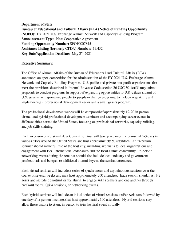 Get the free Notice of Funding Opportunity (NOFO): FY2021 Ambassadors ... - eca state