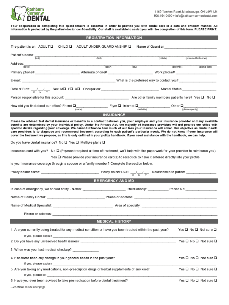 Your cooperation in completing this questionnaire is essential in order to provide you with dental care in a safe