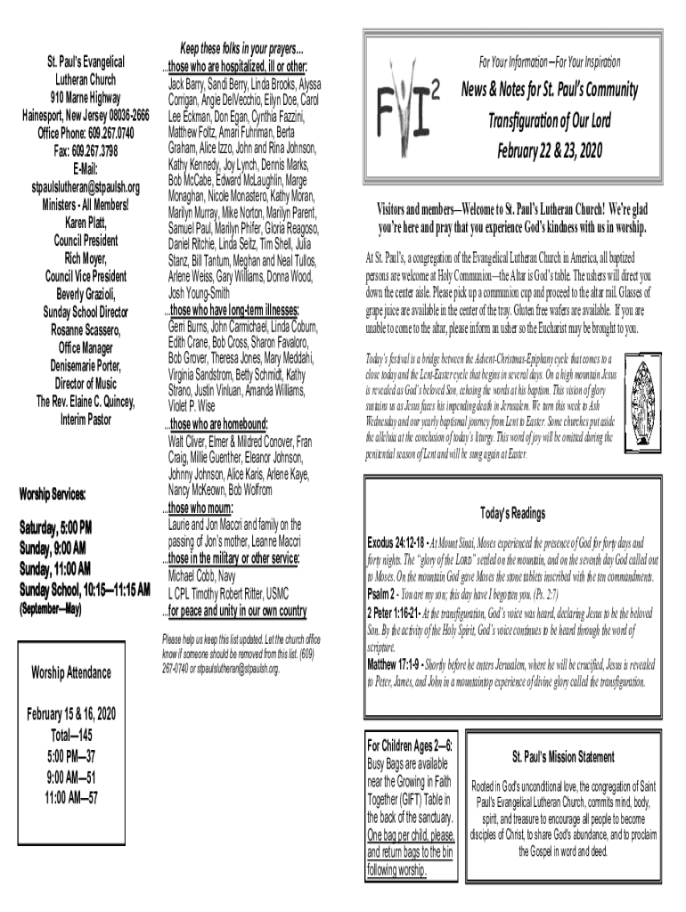 Get the free News & Notes for St. Paul's Community Transfiguration of Our ...