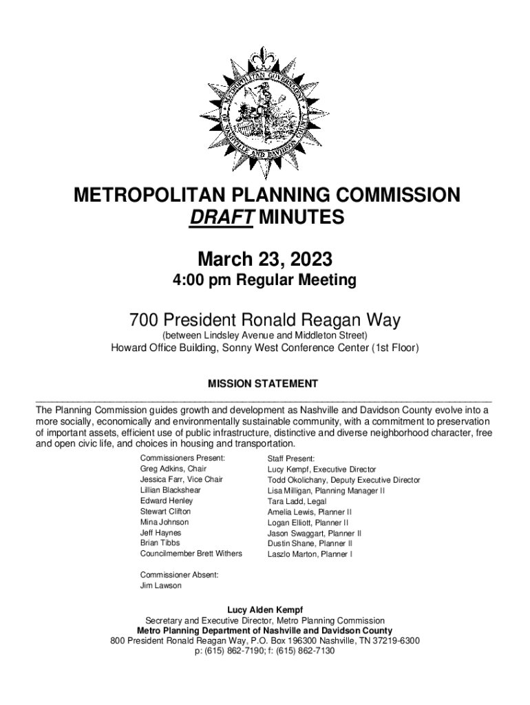 METROPOLITAN PLANNING COMMISSION DRAFT MINUTES March 23, 2023 4:00 pm Regular Meeting700 President Ronald Reagan Way (between Lindsey Avenue and Middleton Street)Howard Office Building, Sonny West