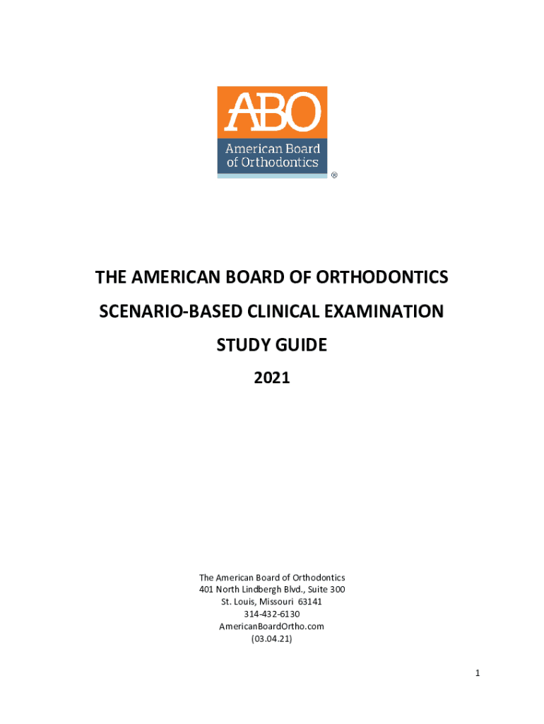 THE AMERICAN BOARD OF ORTHODONTICS SCENARIOBASED CLINICAL EXAMINATION STUDY GUIDE 2021The American Board of Orthodontics 401 North Lindbergh Blvd., Suite 300 St. Louis, Missouri 63141 3144326130 AmericanBoardOrtho.com