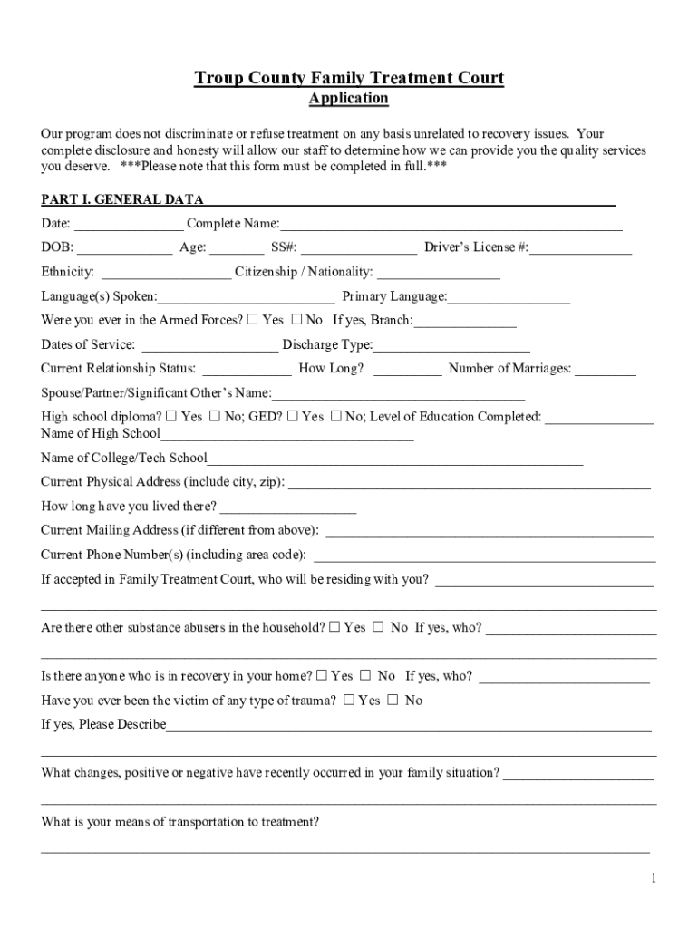Group County Family Treatment Court Application program does not discriminate or refuse treatment on any basis unrelated to recovery issues. Your complete disclosure and honesty will allow our staff