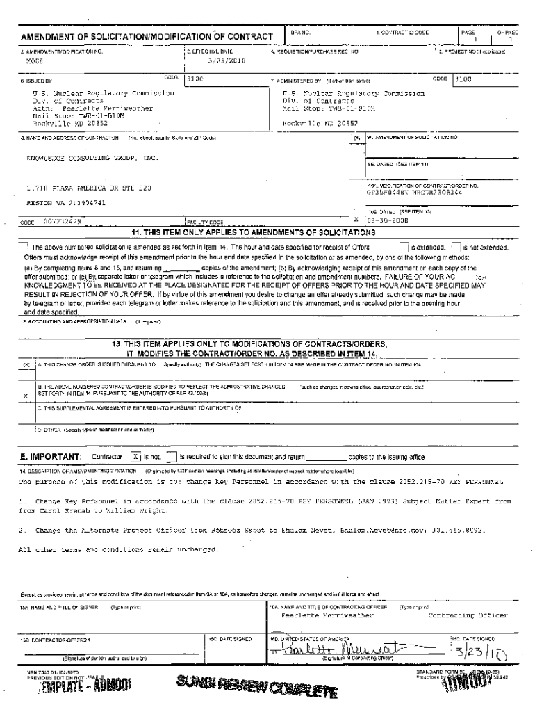 AMENDMENT OF SOLICITATION/MODIFICATION OF CONTRACT 2. AMENOMENTIMODIFICATION NO.3. EFFECTIVE DATEM006IBPA NO.1. CONTRACT D CODEPAGE4. REQUISITION/PURCHASE REQ. NO.OF PAGE115. PROJECT NO, (If applicable)3/23/2010