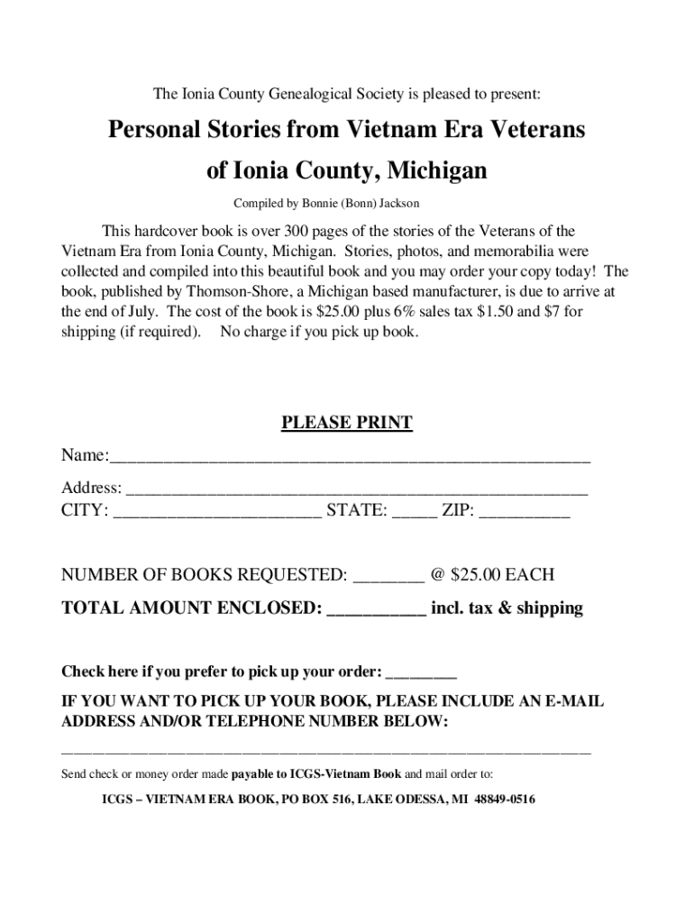 Get the free Personal Stories from Vietnam Era Veterans of Ionia ...