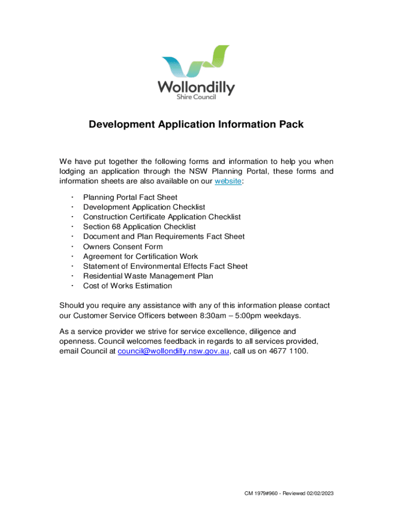Development Application Information Package have put together the following forms and information to help you when lodging an application through the NSW Planning Portal, these forms and information
