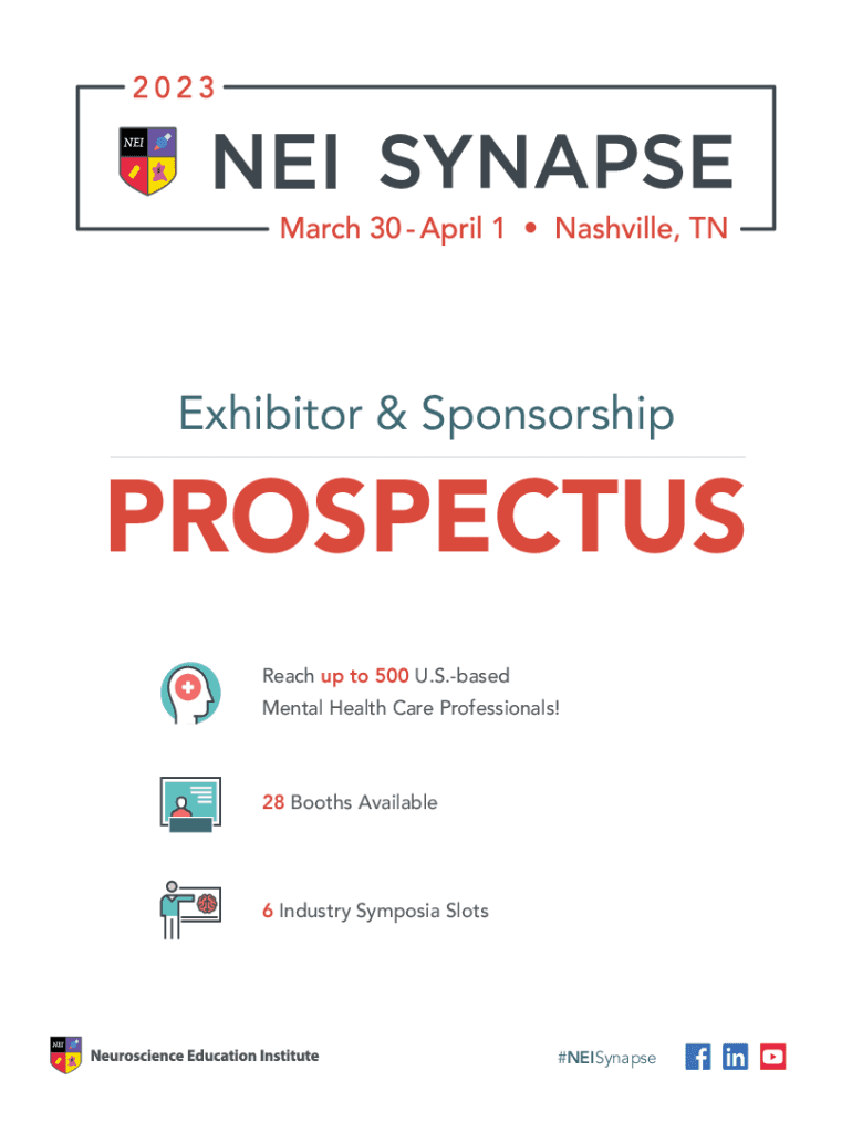 NEW LOGOExhibitor & SponsorshipPROSPECTUS Reach up to 500 U.S.based Mental Health Care Professionals!28 Booths Available6 Industry Symposia Slots#NEISynapseStrengthen Your Synapses Synapse, held at