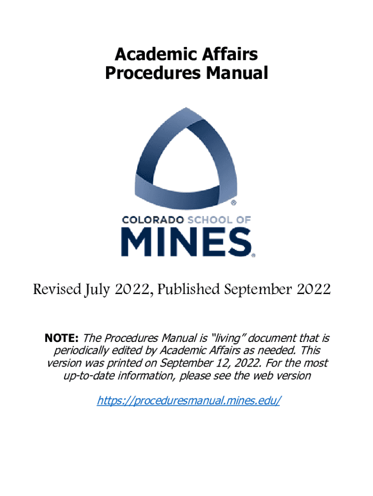 Academic Affairs Procedures ManualRevised July 2022, Published September 2022 NOTE: The Procedures Manual is living document that is periodically edited by Academic Affairs as needed. This version