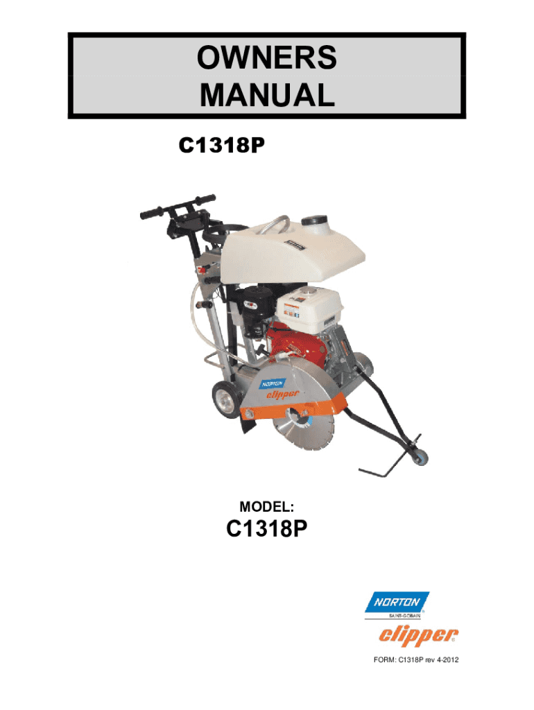 To fill out Norton Clipper C1318P owners, one must provide all necessary information about the equipment and the owner.