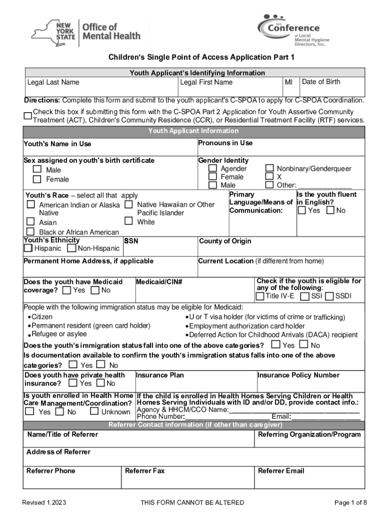 4wOffice ofATEMental Health ! Terence........_or local Mental Hygiene Directors, Inc. Children\'s Single Point of Access Application Part 1 Legal Last Weymouth Applicants Identifying Information Legal