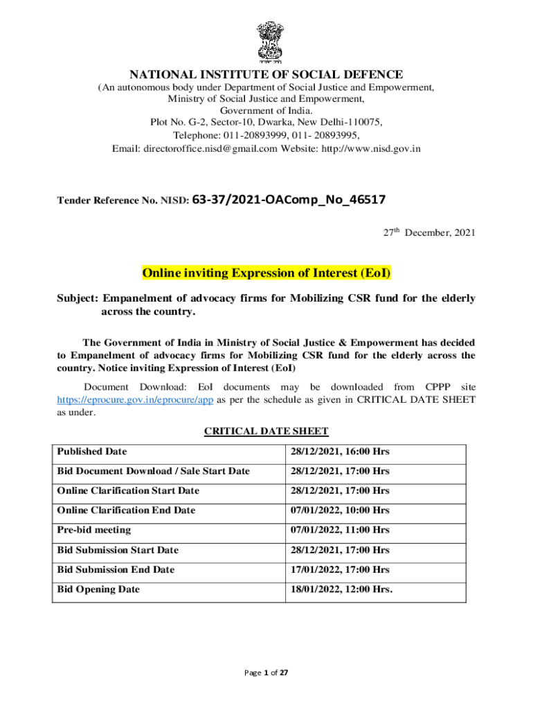 NATIONAL INSTITUTE OF SOCIAL Defense (An autonomous body under Department of Social Justice and Empowerment, Ministry of Social Justice and Empowerment, Government of India. Plot No. G2, Sector10,