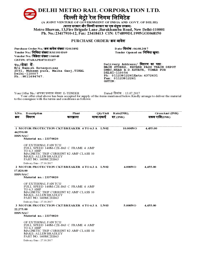 (A JOINT VENTURE OF GOVERNMENT OF INDIA AND GOVT. OF DELHI)