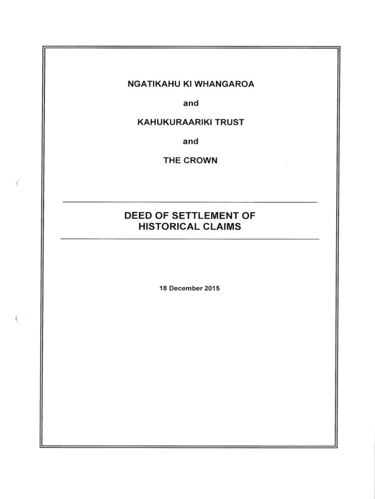 HISTORICAL CLAIMS18 December 2015NGATIKAHU Kl HANGAR DEED OF SETTLEMENTPURPOSE OF THIS DEED sets out an account of the