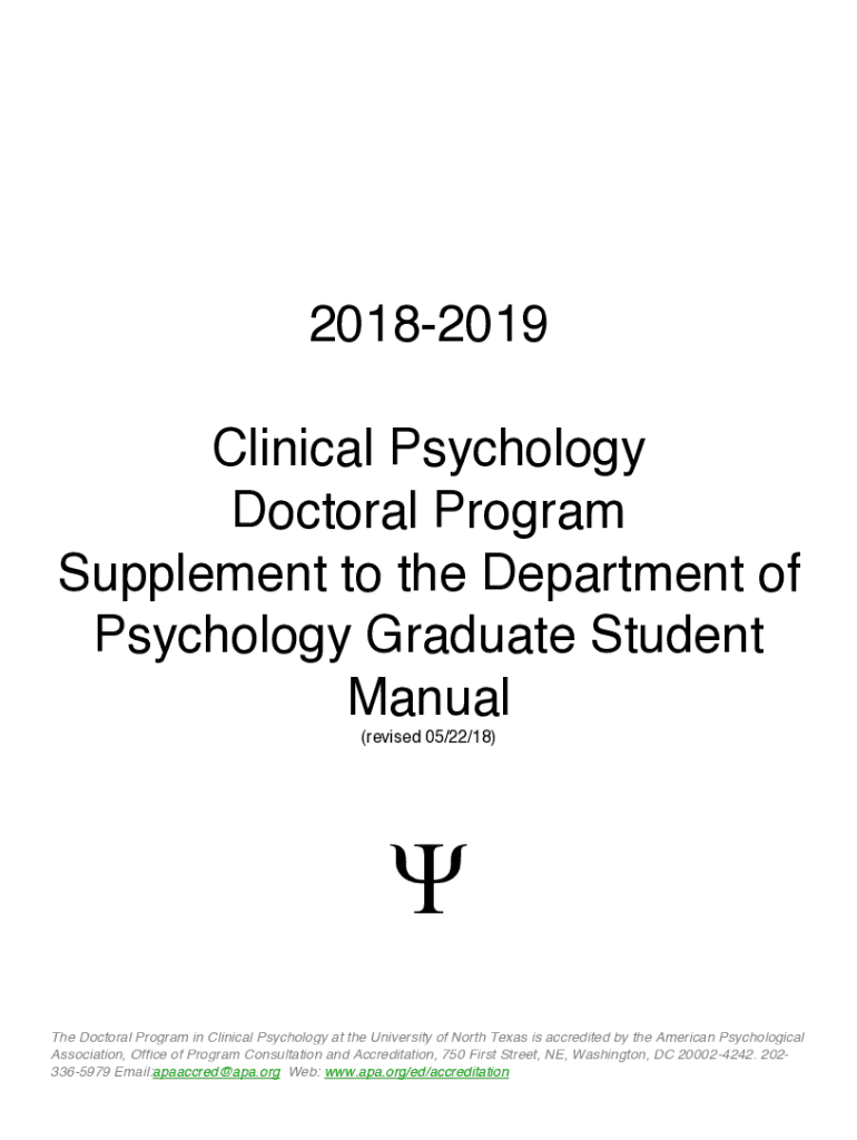 20182019 Clinical Psychology Doctoral Program Supplements to the Department of Psychology Graduate Student Manual (revised 05/22/18)Y The Doctoral Program in Clinical Psychology at the University
