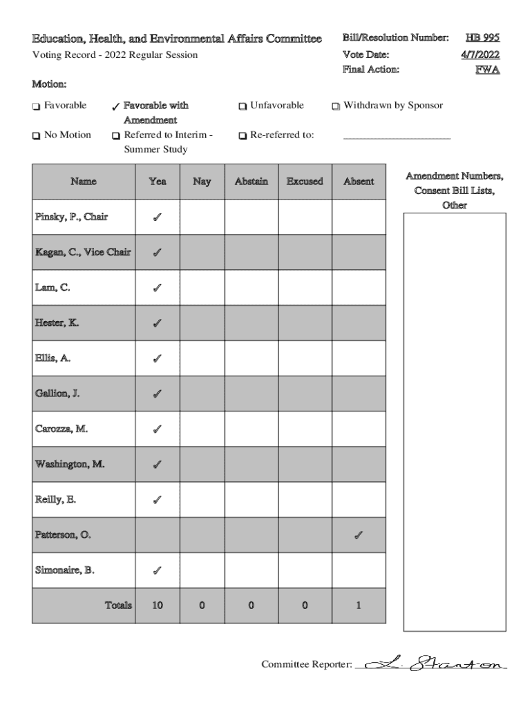 Education, Health, and Environmental Affairs Committee Bill/Resolution Number:Voting Record 2022 Regular SessionVote Date:
