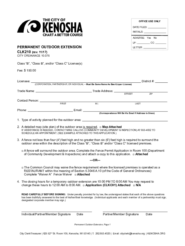 To fill out a permanent outdoor extension application, individuals must provide detailed information about the proposed extension, including diagrams, plans, and any necessary permits.
