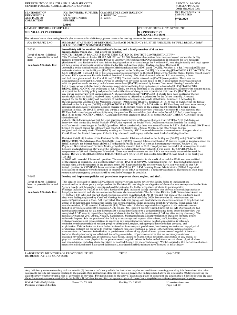 Get the free Nursing Home Survey Report Details for THE VILLA AT PARKRIDGE on 07/21/2020. Survery...