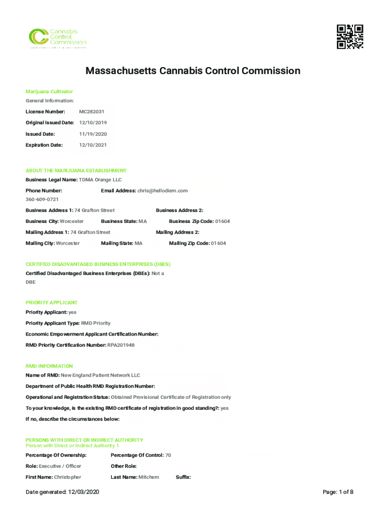 License Number:MC282031Original Issued Date: 12/10/2019