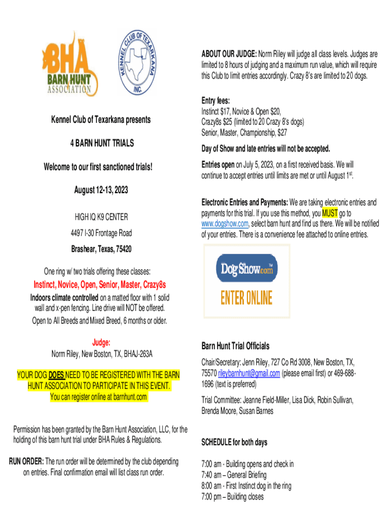 ABOUT OUR JUDGE: Norm Riley will judge all class levels. Judges are limited to 8 hours of judging and a maximum run value, which will require this Club to limit entries accordingly. Crazy 8s are limited