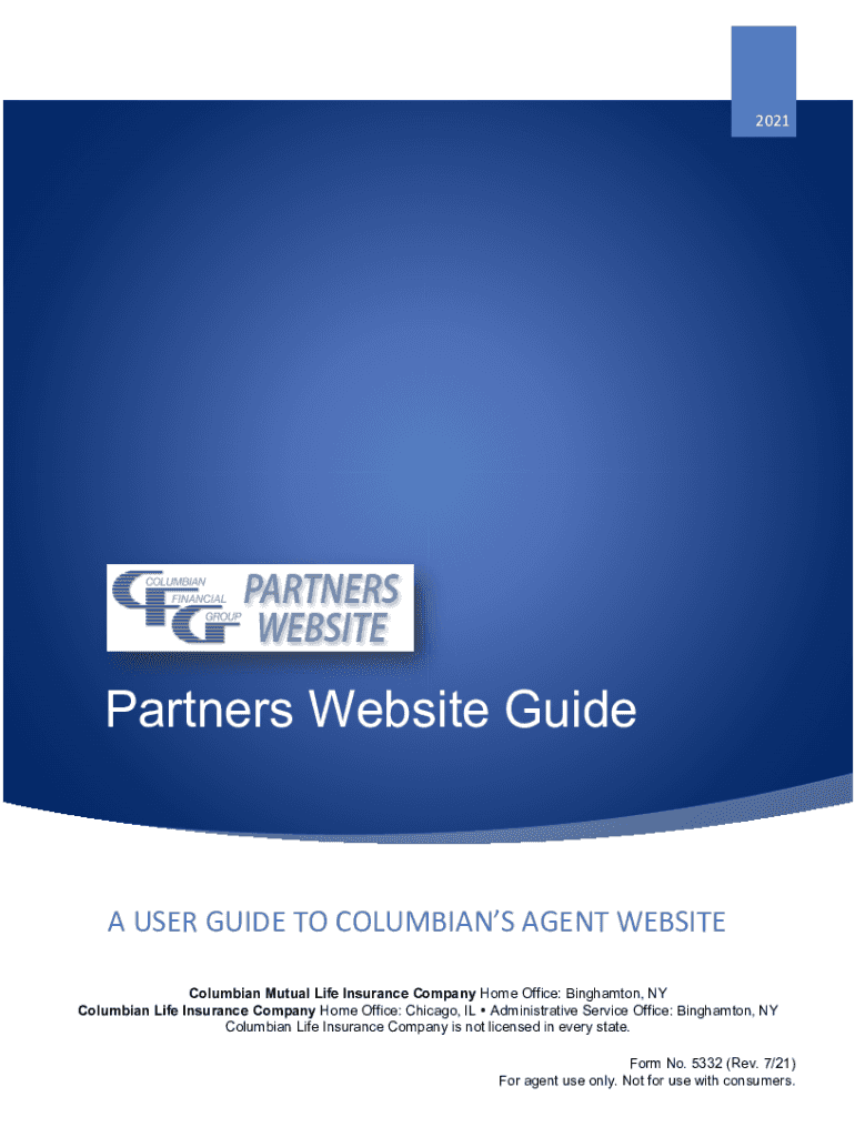 2021Partners Website Guide USER GUIDE TO COLOMBIANS AGENT WEBSITE Columbian Mutual Life Insurance Company Home Office: Binghamton, NY Columbian Life Insurance Company Home Office: Chicago, IL Administrative