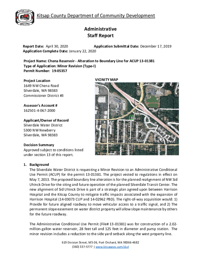 Kitsap County Department of Community Development Administrative Staff Report Date: April 30, 2020, Application Submittal Date: December 17, 2019, Application Complete Date: January 22, 2020, Project