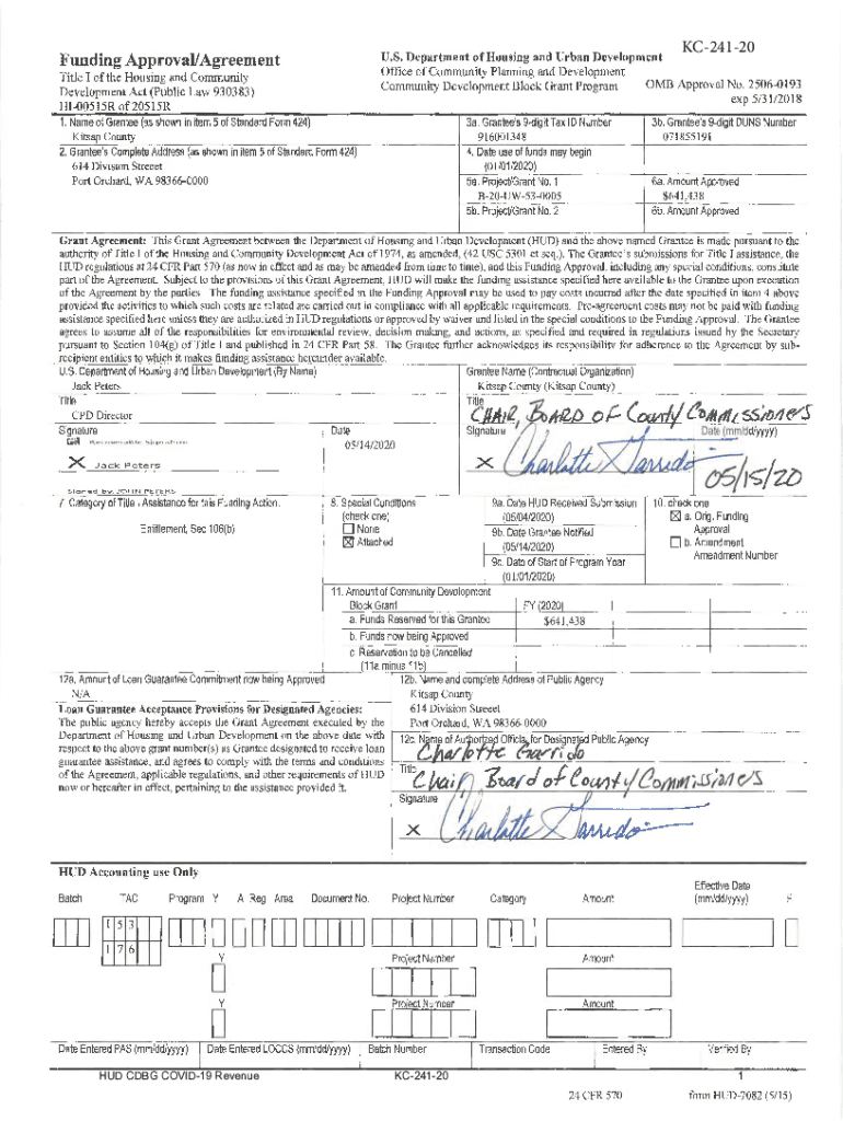 KC24120U. S. Department of Housing and Urban Development Office of Community Planning and Development 0 MB Approval No. 25060 193 Community Development Block Grant Program exp 5/31/20 I 8Funding