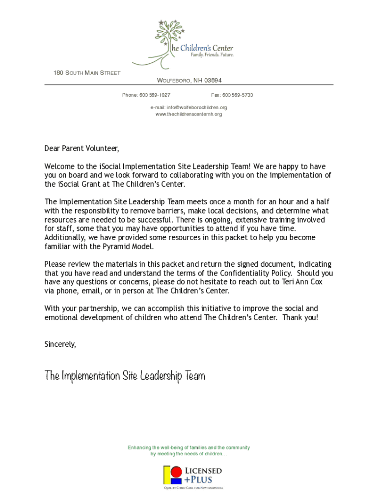 Get the free iSocial Implementation Site Parent Volunteer Welcome Letter