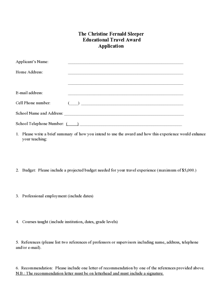 The Christine Bernard Sleeper Educational Travel Award Announcement Purpose The Christine Bernard Sleeper Educational Travel Award is designed to support teachers of Latin by encouraging educational