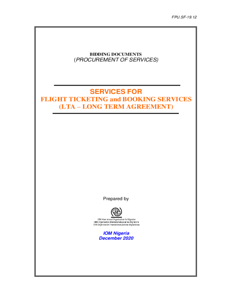 FPU.SF19.12BIDDING DOCUMENTS(PROCUREMENT OF SERVICES)SERVICES FOR FLIGHT TICKETING and BOOKING SERVICES (LTA LONG TERM AGREEMENT)Prepared by IOM Nigeria December 2020REQUEST FOR PROPOSALSCountry: