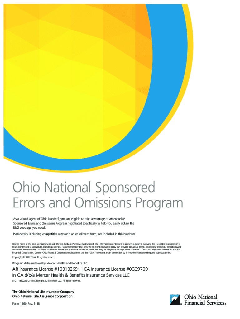 Ohio National Sponsored Errors and Omissions Program As a valued agent of Ohio National, you are eligible to take advantage of an exclusive Sponsored Errors and Omissions Program negotiated specifically